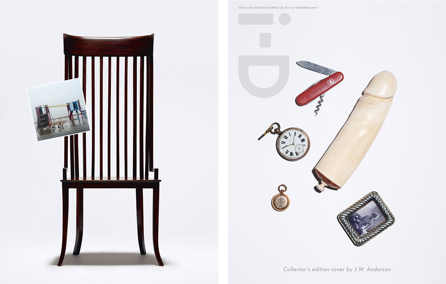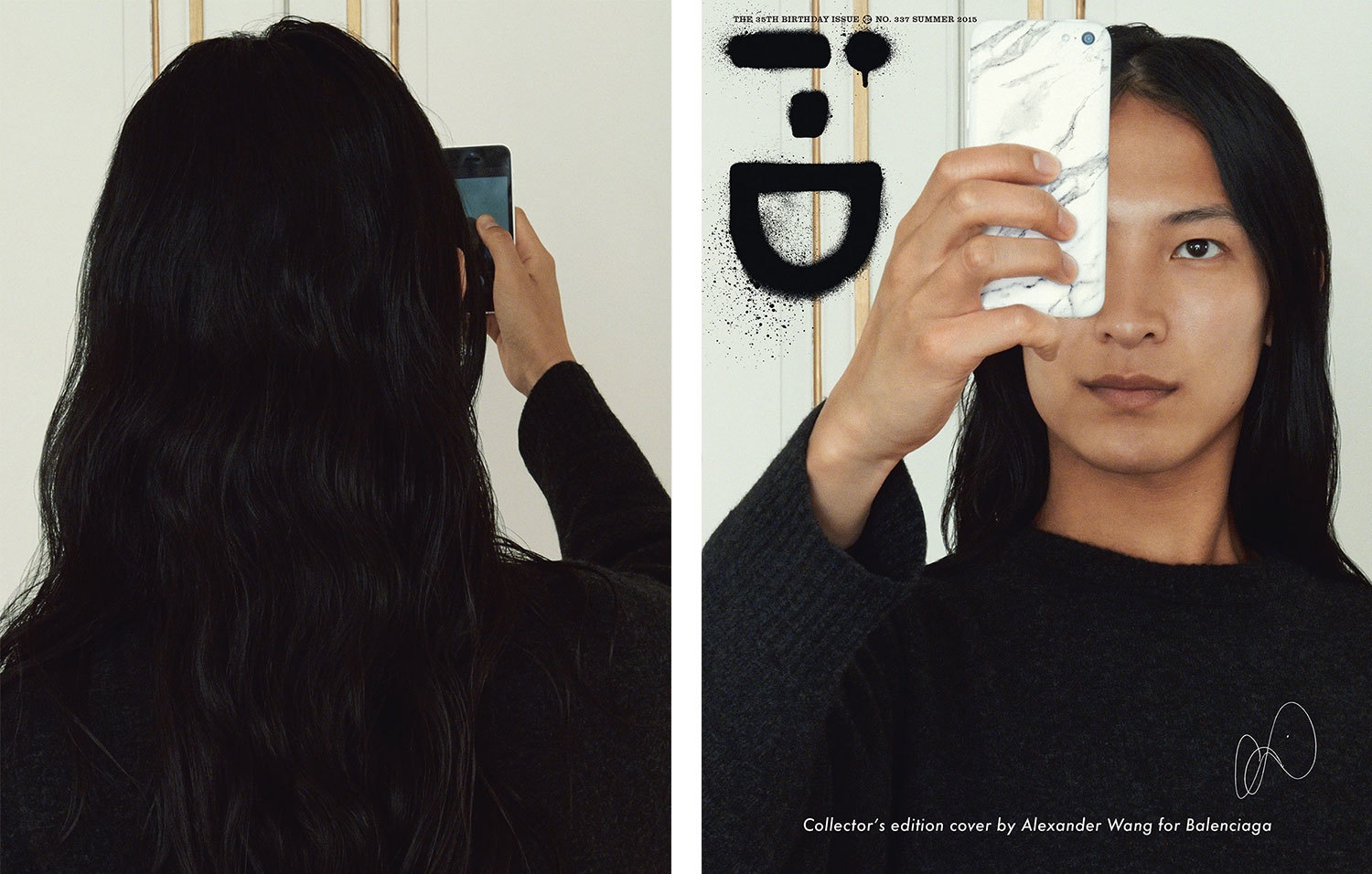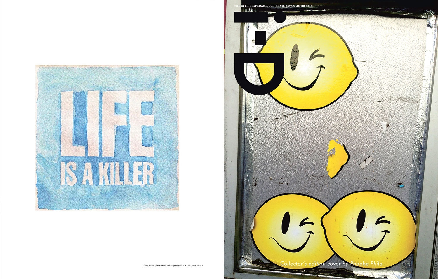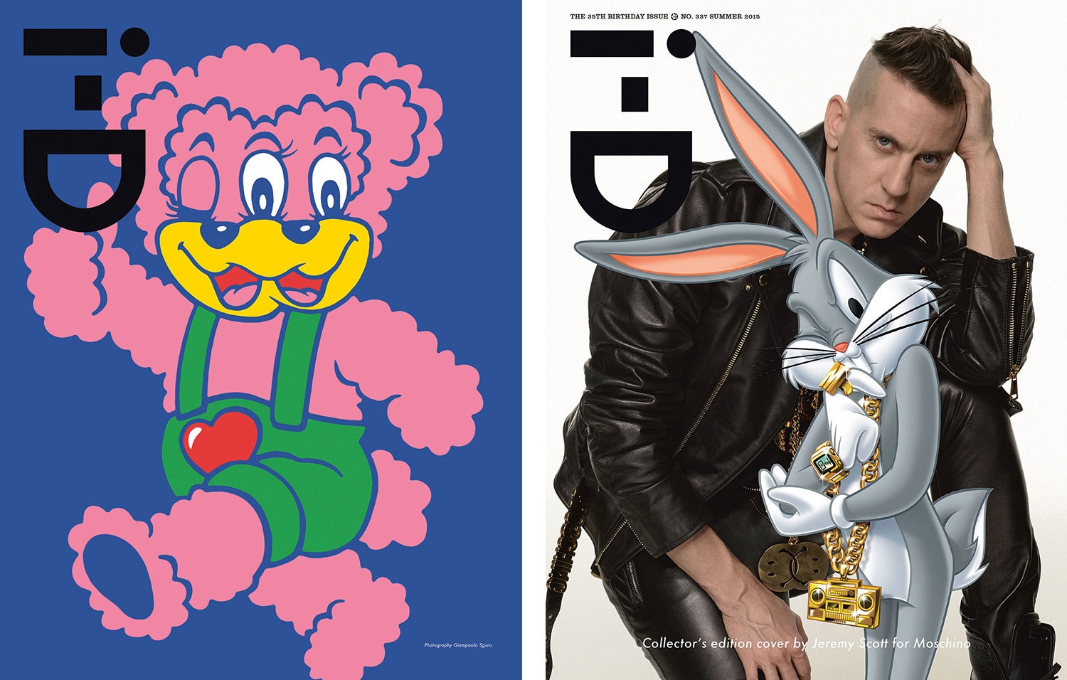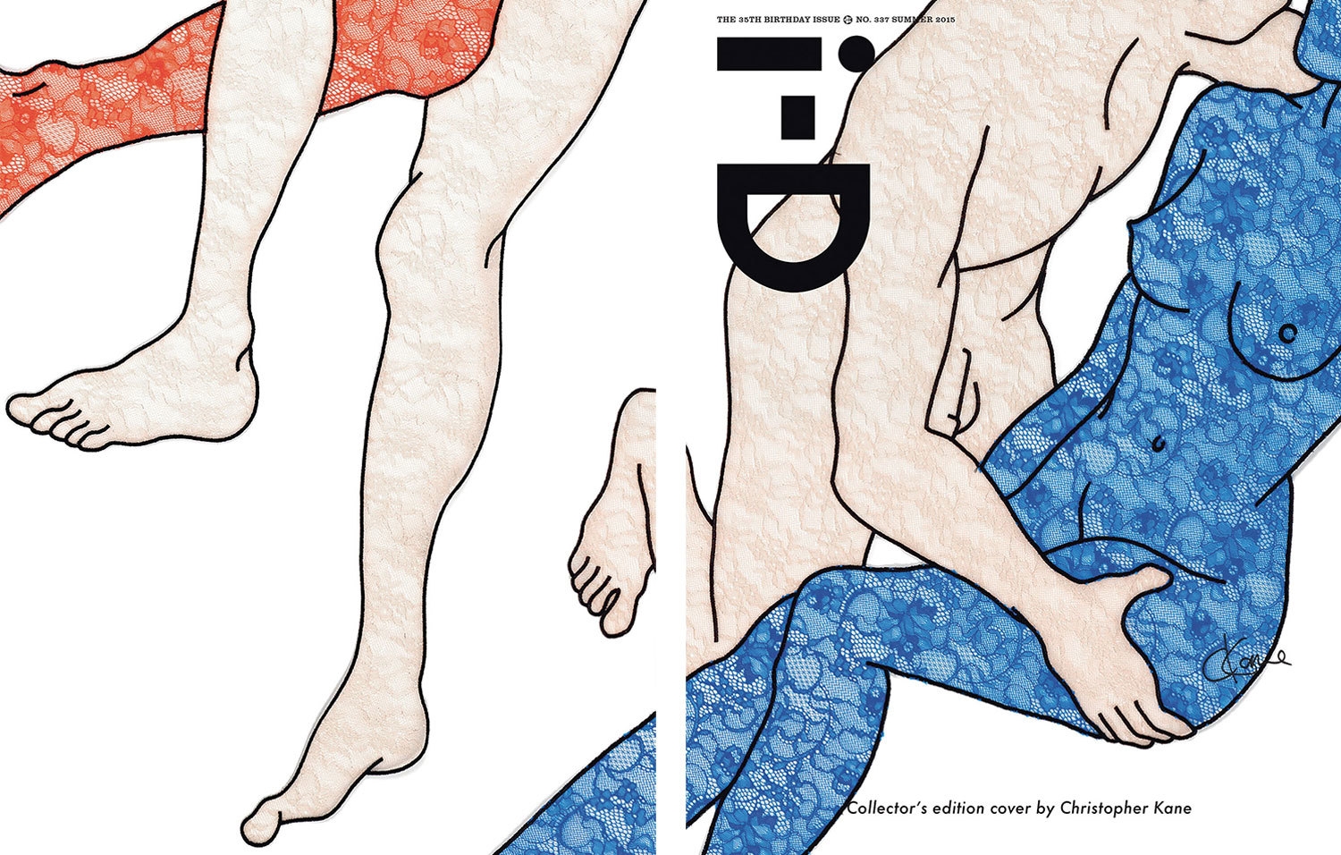 在《i-D》杂志发行 35 周年时。杂志邀请了 11 位当大牌时装设计师,打造出 11 款珍藏版封面设计风格。于是我们看到 Karl Lagerfeld、Alexander Wang、Jeremy Scott、Raf Simons、Phoebe Philo、Vivienne Westwood 等当今时装界最有号召力的一群设计师拿出了各自的“Wink”佳作。