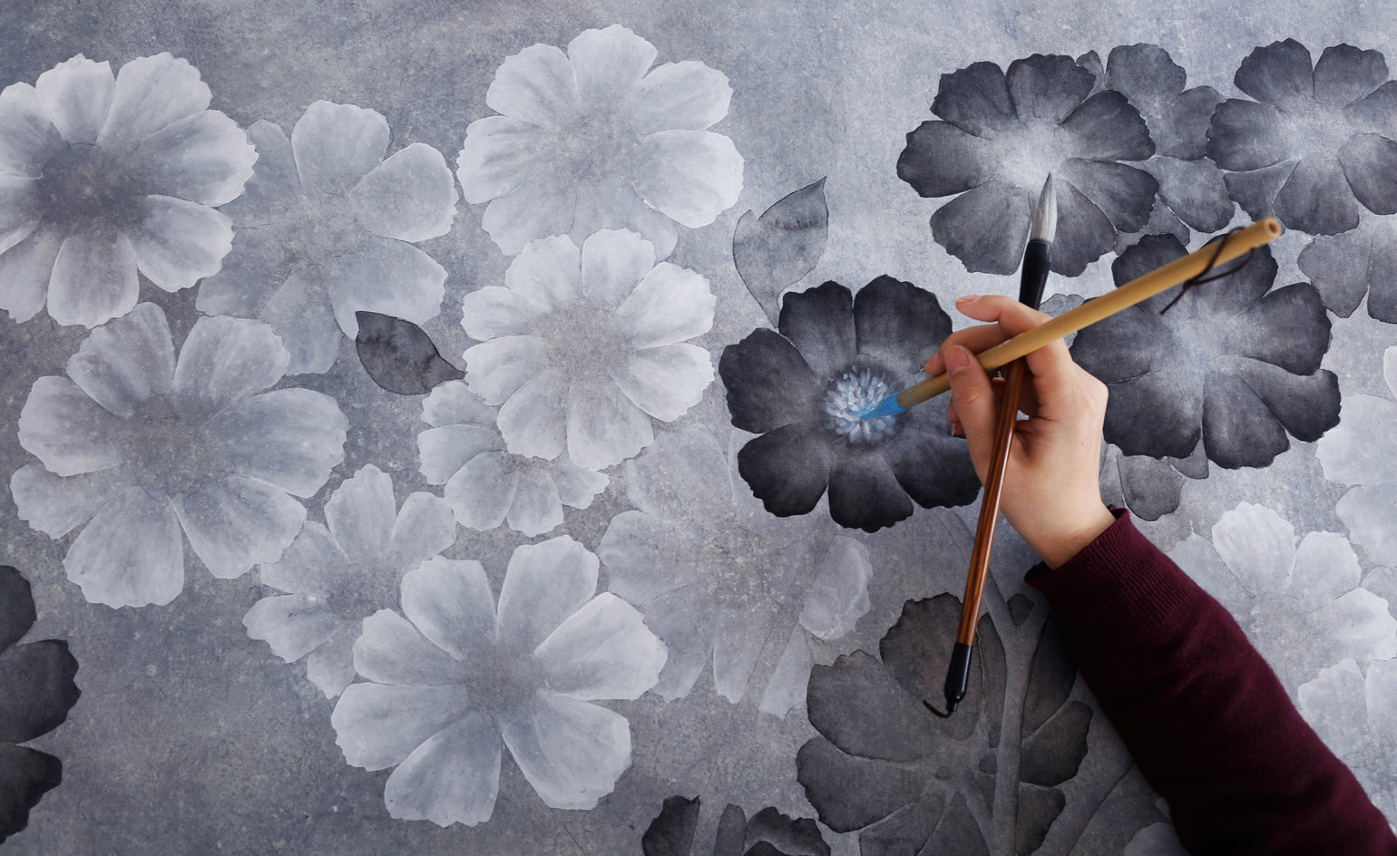 超模 Kate Moss 想必人人都知道了。而她的另一面可以大家还不太了解,那就是绘画,近期她与英国手绘壁纸公司 de Gournay 合作,在这个项目中,Kate Moss 既是设计师,也是客户。Anemones in Light 系列壁纸正是 de Gournay 按照 Kate Moss 的需求和设计,为其伦敦之家专门定制的。这也不是双方第一次合作,de Gournay 也曾为 Kate Moss 在乡下的房子定制过一种壁纸,是模仿松鸡在花园里叽叽喳喳的景象。