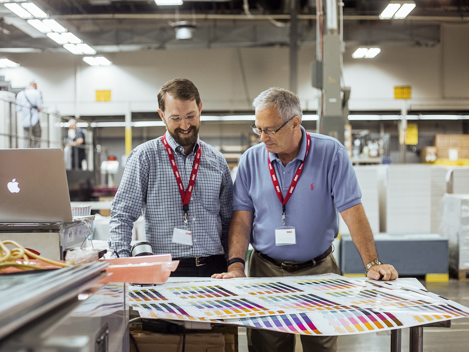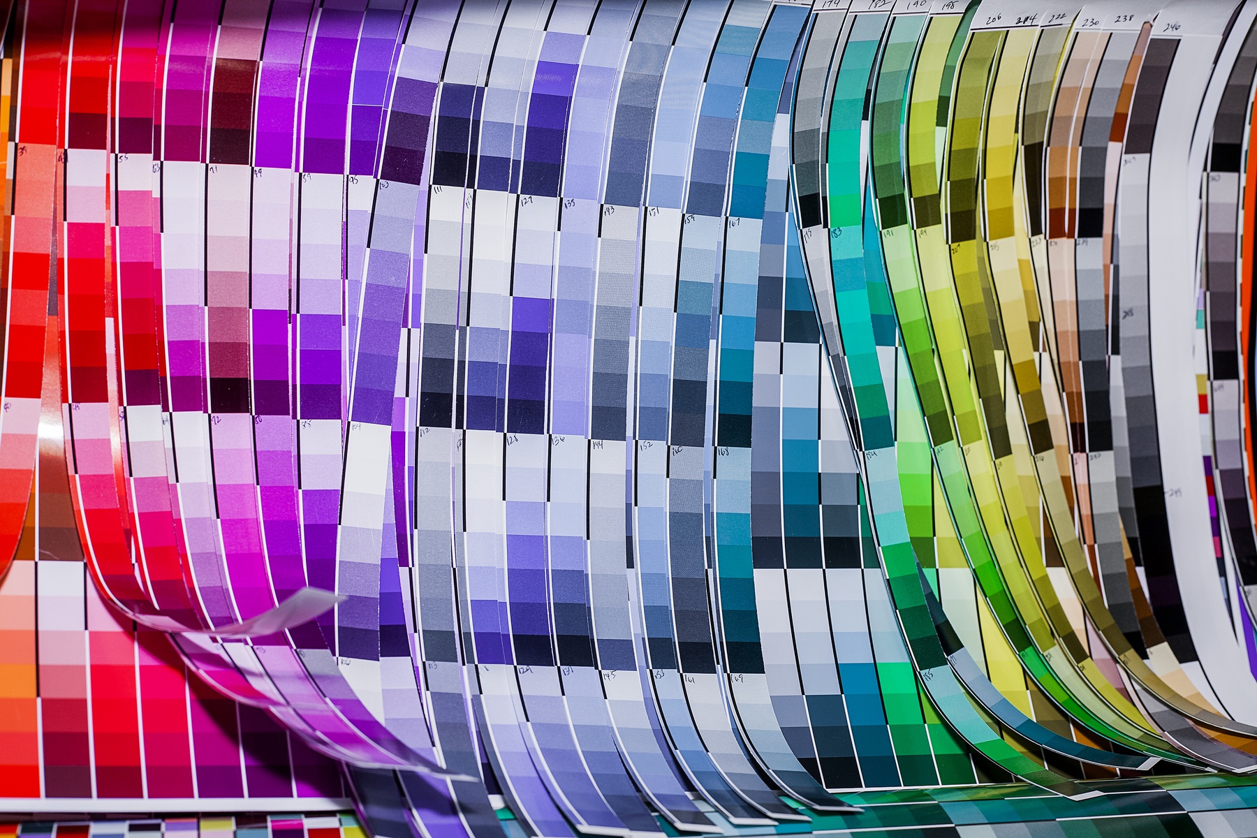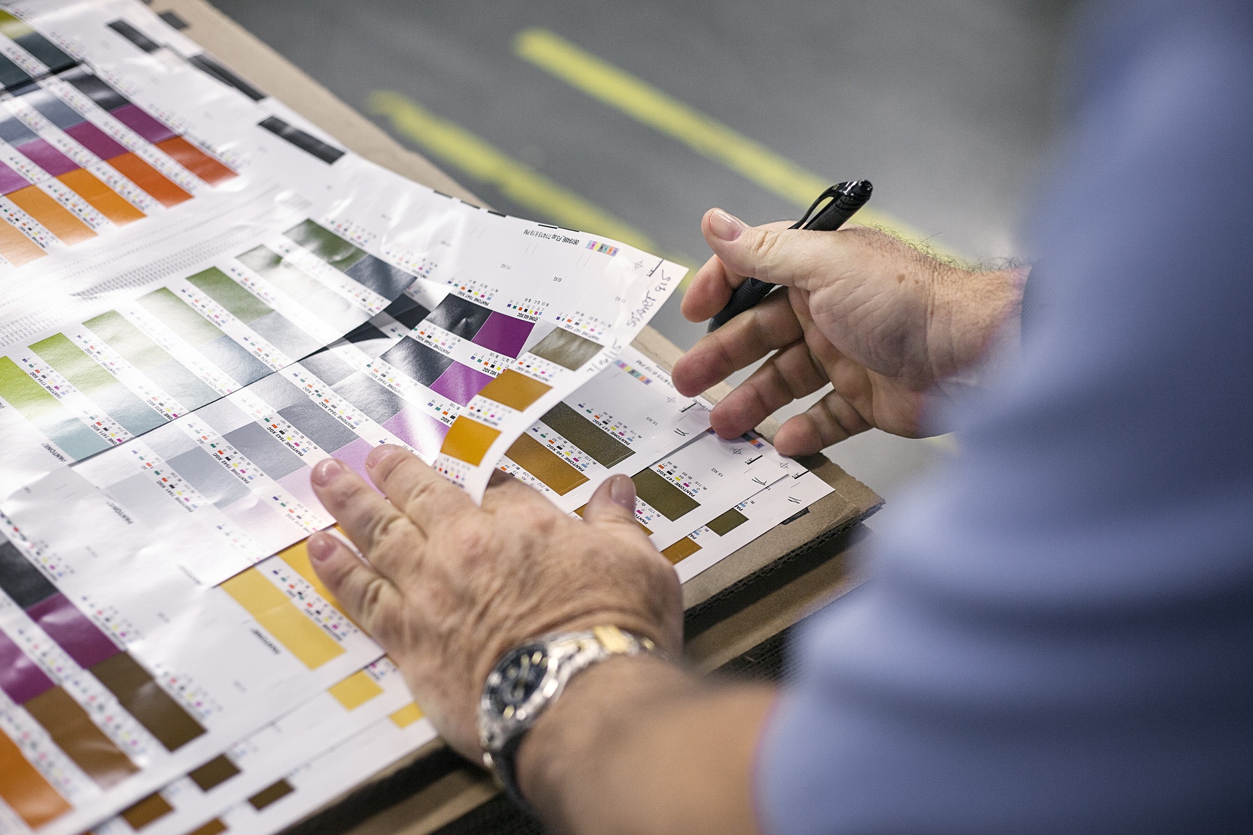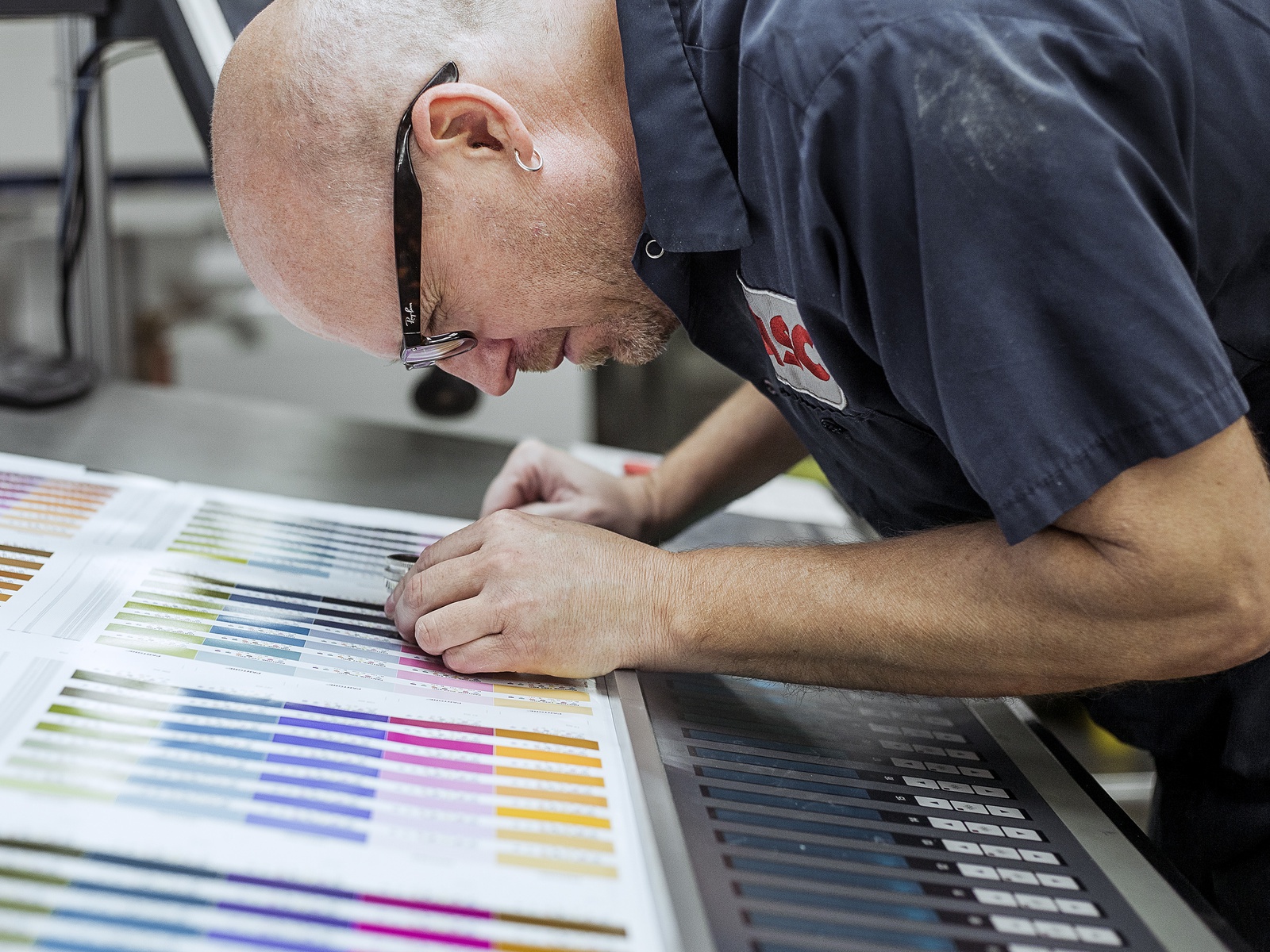 色彩工厂里的技术人员以手工调配色彩,会先以少量的颜料试验,接着将合成的颜色交给机器制作,印刷出来之后再经过肉眼辨识、确认。想成为Pantone的颜色技术人员,势必得拥有优于一般人的色彩敏锐度,能够辨认出一般人察觉不出的颜色些微差异,每年还必须接受色彩考试,以确保所有技术人员维持着标准的判别力。