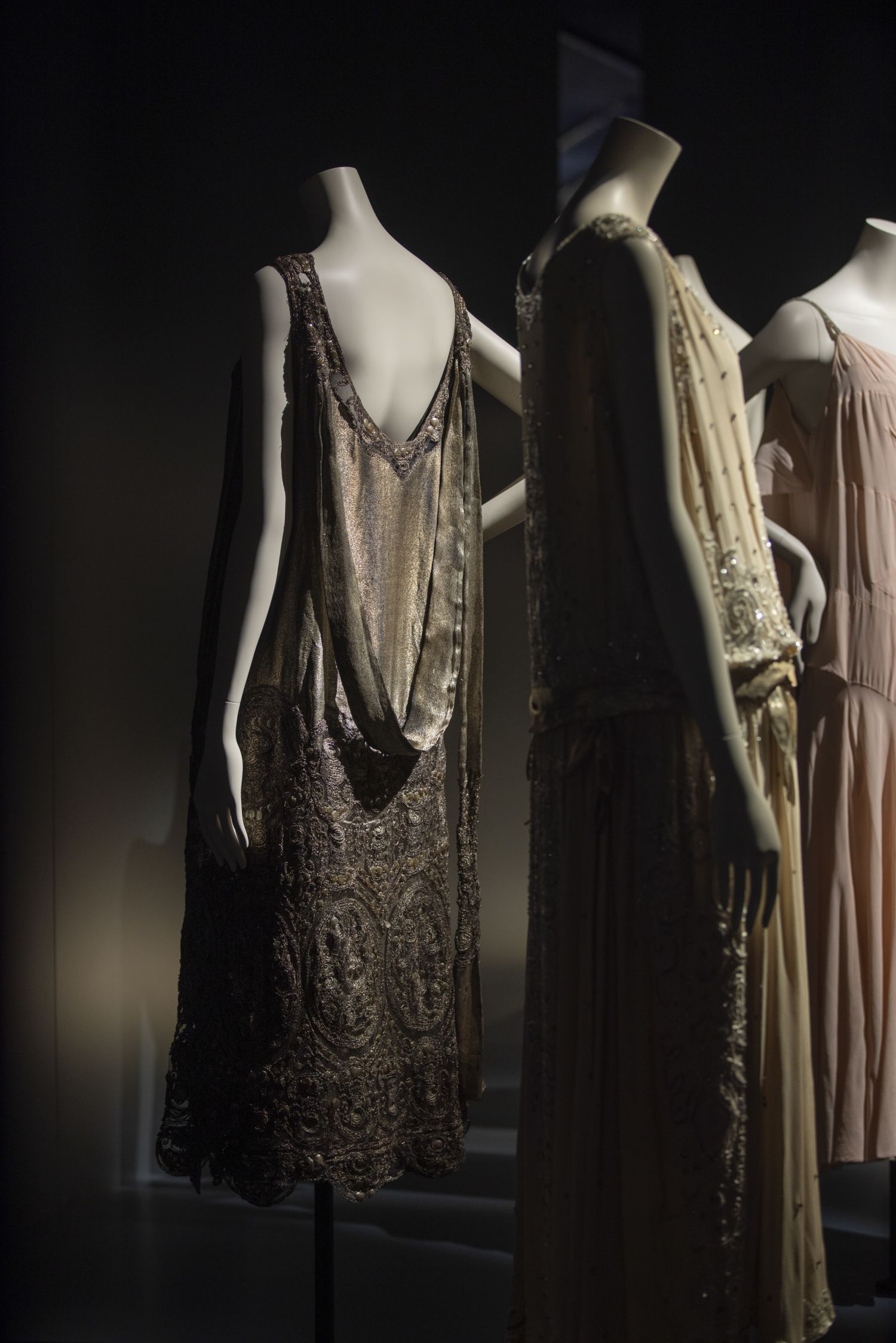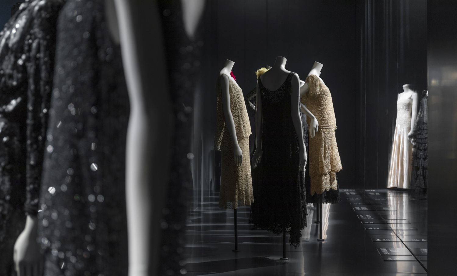展览按时间顺序和主题策划共同展开,由两个主要章节构成,分别展示了香奈儿女士自1910年代到1930年代的创作,以及1954年至1971年重回时尚界后的作品。她的职业初期以其一系列标志性作品开启,包括著名的jersey针织面料横纹水手衫——该设计元素于1913年首次出现在香奈儿系列作品中。从1910年代的运动风格服饰和小黑裙,到诞生于1920年代精美的连衣裙,香奈儿风格的发展与演进脉络清晰可见。展览的第一部分聚焦简约、年轻、动感、魅力等创作理念,它们自香奈儿职业生涯伊始就被媒体频繁提及。凭借一系列风格独特的作品,这些理念在展览中得以完美展现,尽显嘉柏丽尔·香奈儿设计的独特性。